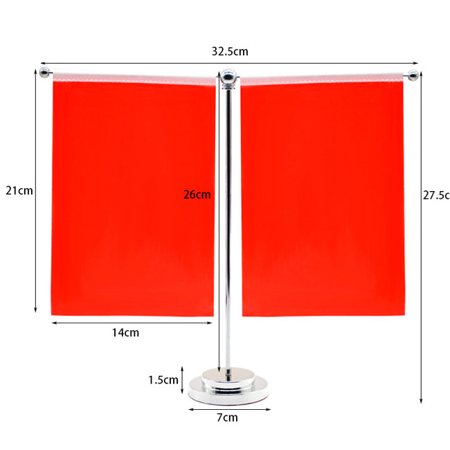 Bộ cờ để bàn đôi: 1 lá cờ Hồng Kỳ + 1 lá Quốc Kỳ, treo song song, tạo không gian trang trọng hơn.