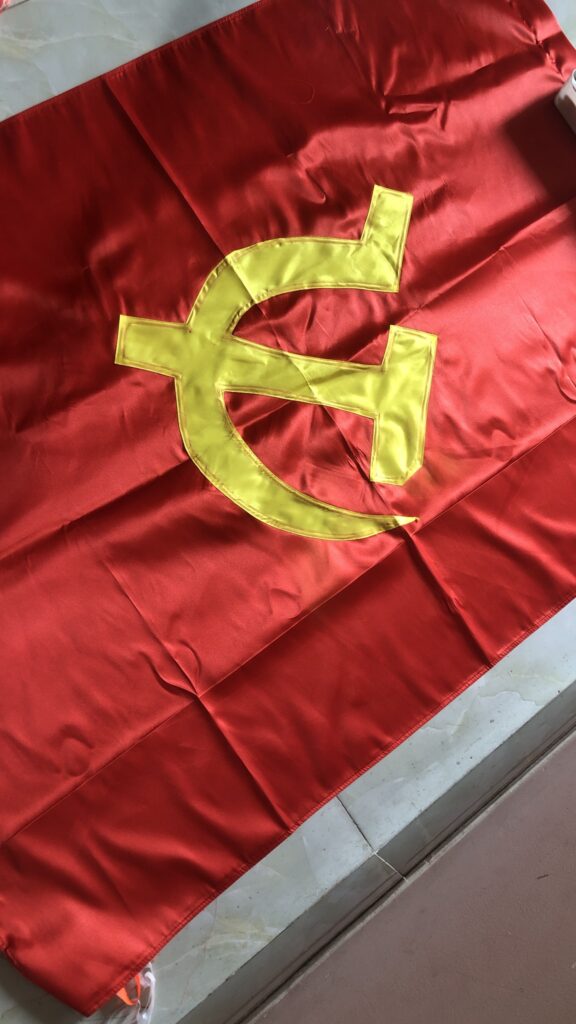 Đặt cờ Đảng treo hội trường tại xưởng HOÀNG GIA giúp cơ quan yên tâm về kích thước chuẩn, màu sắc sắc nét và chất lượng cao.