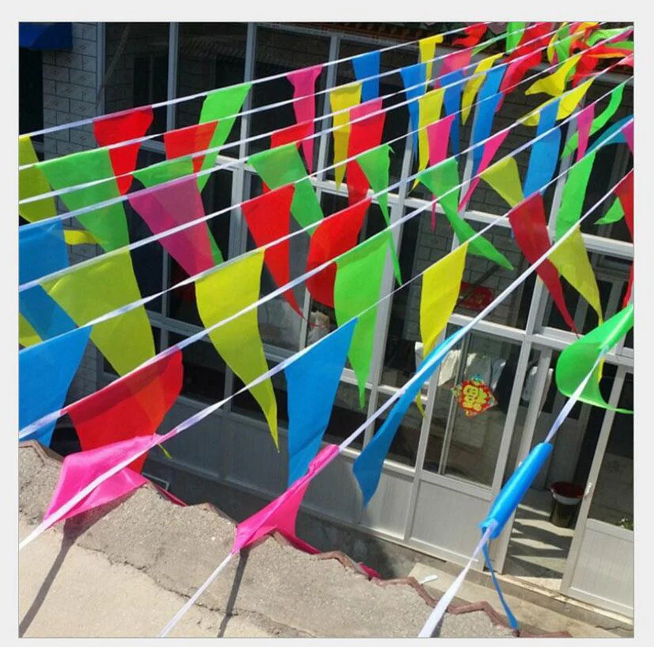 Cờ dây tam giác dùng cho lễ khai trương không chỉ dùng để treo mặt tiền mà còn có thể trang trí rất nhiều hạng mục: