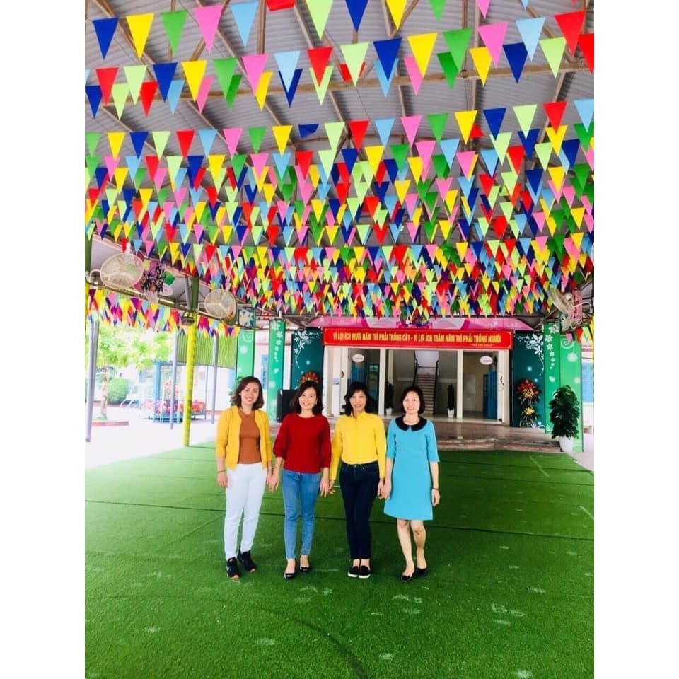 Cờ dây tam giác trang trí Tết hoặc lễ hội mùa xuân: Treo nhà, sân trường, đường phố, tạo không khí vui tươi, sôi động.