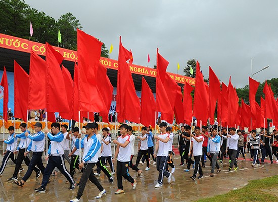 Sự hiện diện của cờ hồng kỳ góp phần tạo nên không khí long trọng và mang đậm giá trị văn hóa dân tộc.