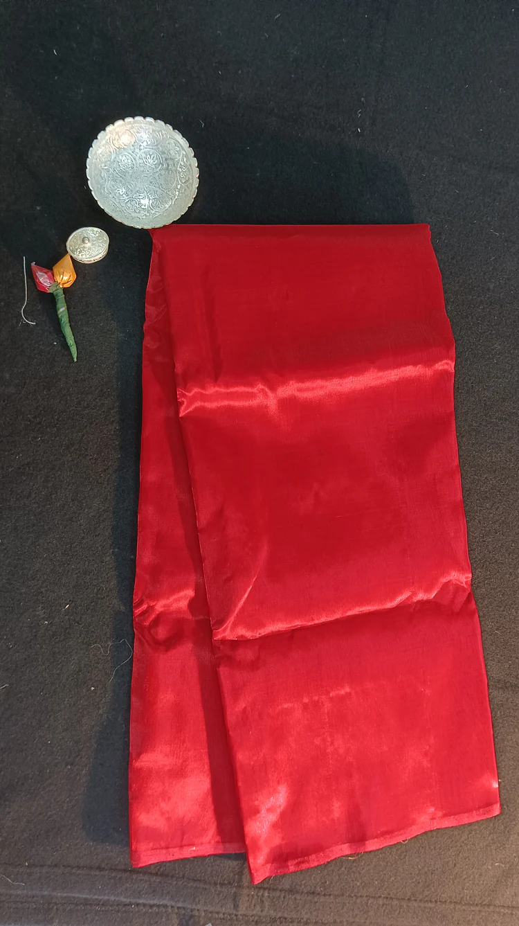 Vải phi bóng cao cấp: Bề mặt mịn, bắt sáng tốt, màu đỏ tươi, sang trọng