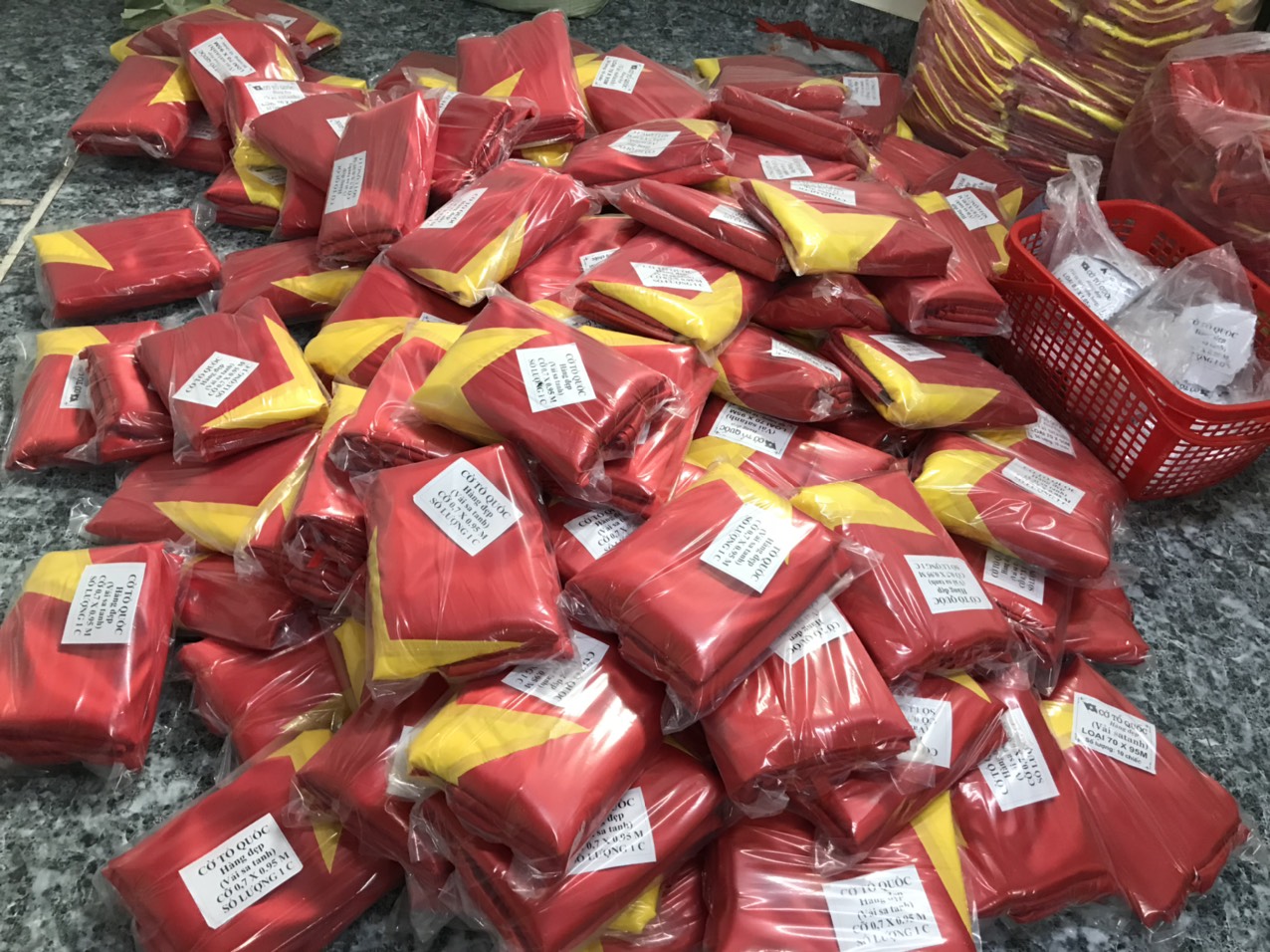 Kiểm tra chất lượng từng lá cờ trước khi giao.
