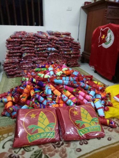 Sản xuất cờ dây: in màu, may, hoàn thiện từng lá cờ đuôi nheo;