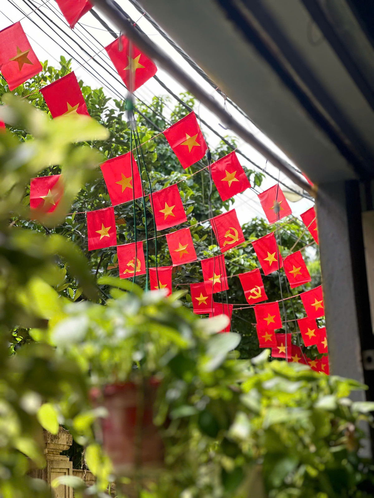 Dây cờ giúp không gian sinh hoạt tập thể thêm rực rỡ.