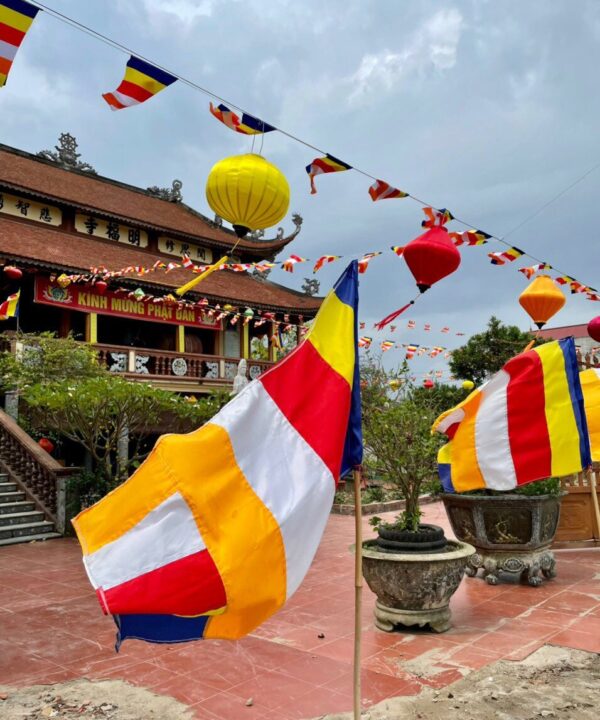 2. Cờ treo trong chùa: Mềm mại, rực rỡ, tạo không gian trang nghiêm.